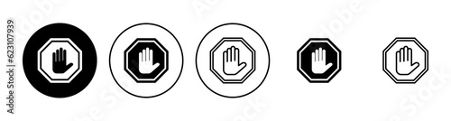 © AAVAA, Obraz premium Stop icon set. stop road sign. hand stop icon vector