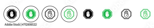 © AAVAA, Obraz premium Stop icon set. stop road sign. hand stop icon vector
