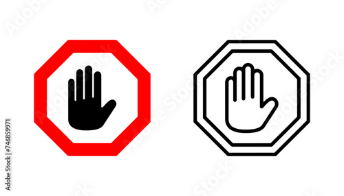 © AAVAA, Obraz premium Stop icon set. stop road sign. hand stop icon vector