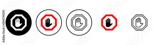 © AAVAA, Obraz premium Stop icon set. stop road sign. hand stop icon vector
