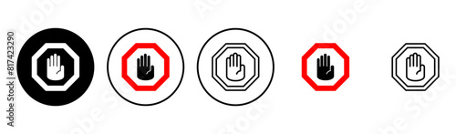 Fototapeta premium Stop icon set. stop road sign. hand stop icon vector