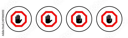 Fototapeta premium Stop icon set. stop road sign. hand stop icon vector