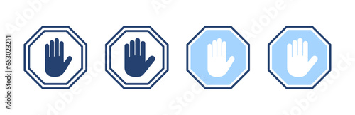 Fototapeta premium Stop icon vector. stop road sign. hand stop sign and symbol. Do not enter stop red sign with hand