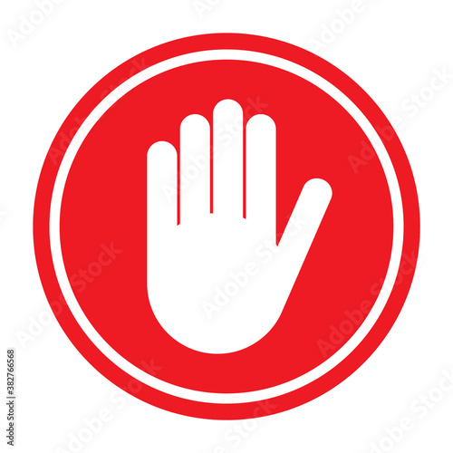 Obraz premium Stop icon with alert hand, warning covid symbol, no - danger isolated on...