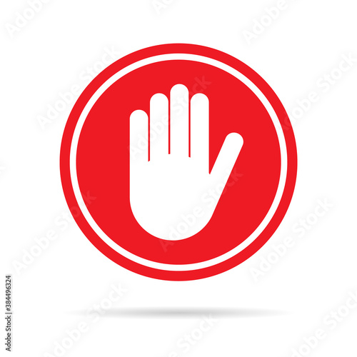 Obraz premium Stop icon with alert hand, warning covid symbol, no - danger isolated on...