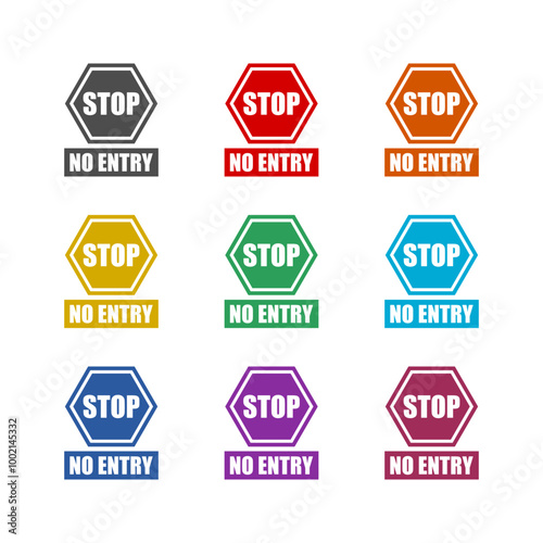 © sljubisa, Obraz premium Stop no entry sign icon isolated on white background. Set icons colorful