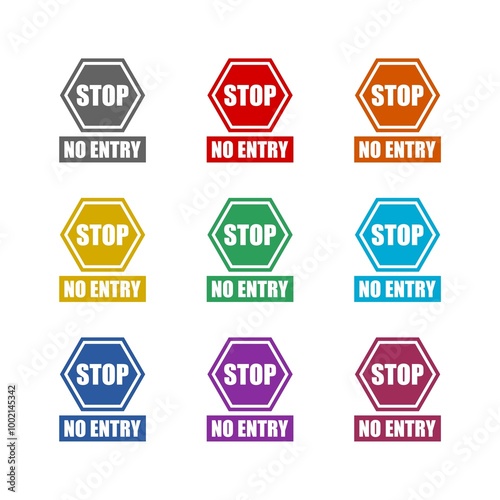 © sljubisa, Obraz premium Stop no entry sign icon isolated on white background. Set icons colorful