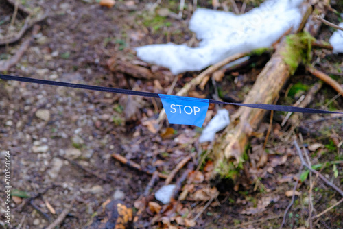 Obraz premium Stop sign in Tatras national park. Limited movement