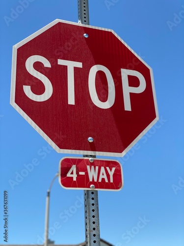 © Edmee, Obraz premium stop sign on blue sky