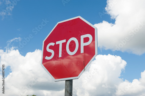 © spaxiax, Obraz premium Stop sign over blue sky background