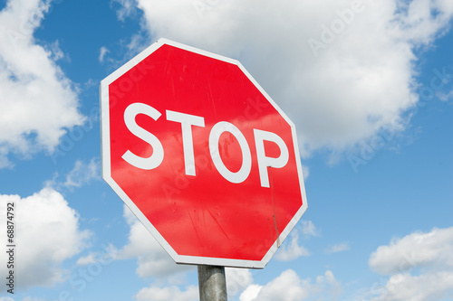 © spaxiax, Obraz premium Stop sign over blue sky background