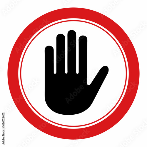 Obraz premium Stop Sign Symbol With Hand In Center In Red Circle Vector
