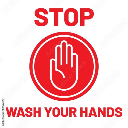 Fototapeta premium Stop sign. Wash your hands red vector sticker template