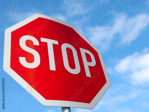 © Stimmungsbilder1, Obraz premium Stop sign with blue sky and clouds