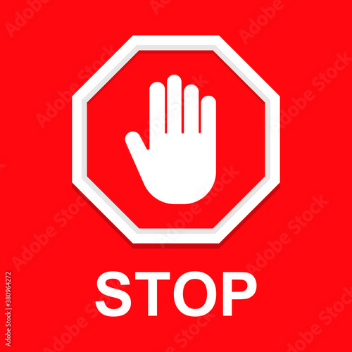 © antoniofrancois, Obraz premium Stop Sign with Hand Set Icon. Vector Illustration