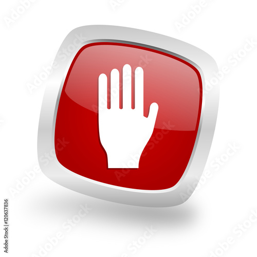 Obraz premium stop square red glossy chrome silver metallic web icon