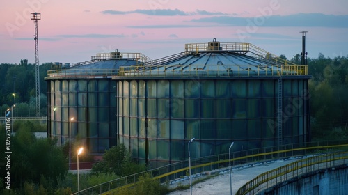 Obraz premium Storage Tank for Fuel and Oil. Crude, Gasoline, and Diesel Storage Concept