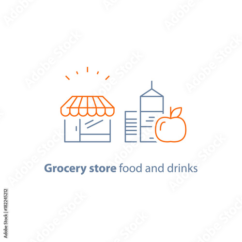 © stmool, Fototapeta premium Store food and drink order, grocery special offer promotion, checklist and clipboard vector line icon