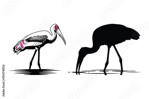 © Sadek, Fototapeta premium Stork and Ibis Illustration in Water