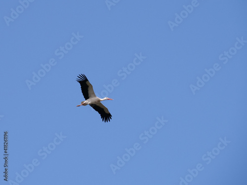 Fototapeta premium stork flying against blue sky with spread wings