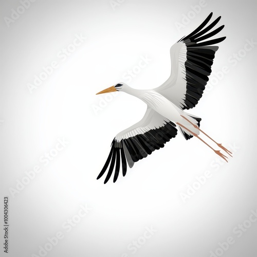 Fototapeta premium Stork Flying Isolated on White Background