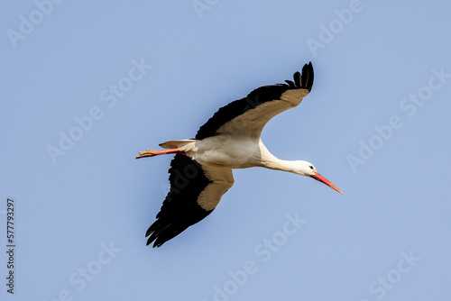 © serge, Obraz premium Stork in flight in a blue sky in Provence, France