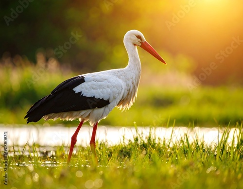© jam, Fototapeta premium Stork in golden sunlight