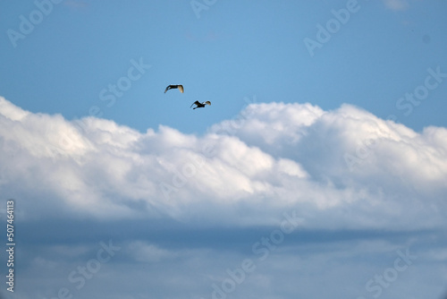 Fototapeta premium storks in the sky together flying