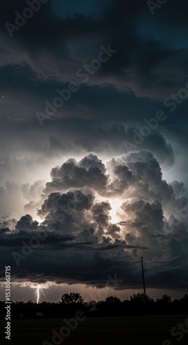 Fototapeta premium Storm Clouds Building with Lightning Strikes Over Open Landscape
