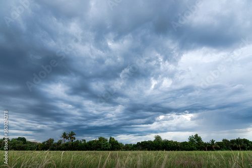 © krungchingpixs, Obraz premium Storm dark clouds over the field.