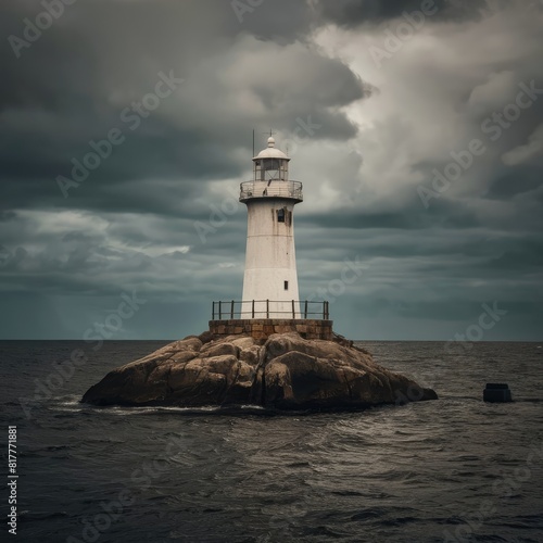 Naklejka premium Storm-Resistant Lighthouse on Cliffside
