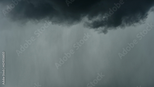 Naklejka premium storm sky, dark dramatic clouds during thunderstorm, rain and wind, extreme...
