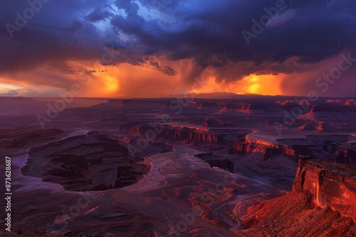 Fototapeta premium Stormy blue hour landscape of majestic Grand Canyon with dramatic clouds and...