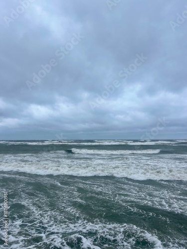 Fototapeta premium stormy cloudy seascape, waves at the sea, rainy clouds