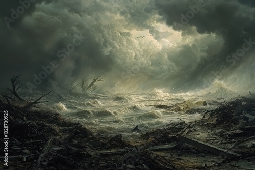 Fototapeta premium Stormy Coastal Scene with Dark Swirling Clouds and Churning Waves