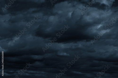 Obraz premium Stormy dark cloudy sky. Pollution, PM 2.5, Carbon dioxide and environment problems concept. Halloween, scary scene thunderstorm and rainy season backdrop.
