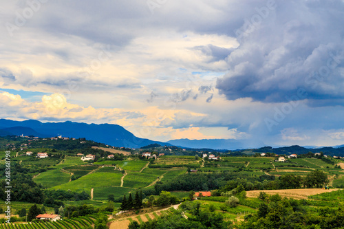 Naklejka premium Stormy day in the vineyards of Brda, Slovenia