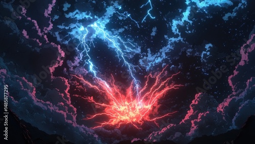 © Hutan, Obraz premium Stormy night sky with vibrant lightning