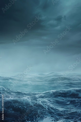 Naklejka premium Stormy ocean landscape with dramatic lighting - Dramatic and intense ocean...