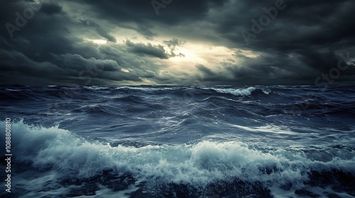 Obraz premium Stormy Ocean Waves and Dark Clouds