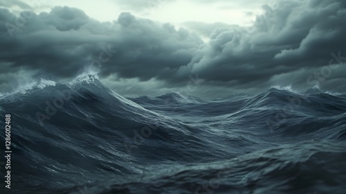 Fototapeta premium Stormy Ocean Waves Dark Skies Turbulent Water Powerful Motion Energy Nature