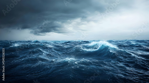 Fototapeta premium Stormy Ocean Waves Under Dark Cloudy Sky