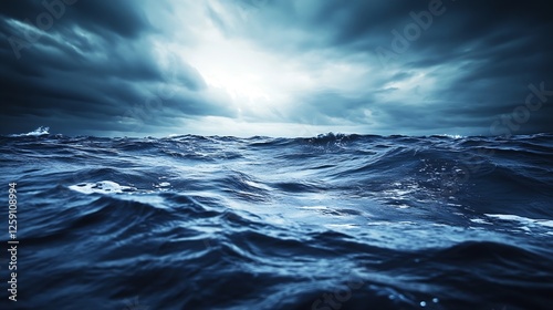 © Generative AI, Fototapeta premium Stormy Ocean Waves Under Dramatic Cloudy Sky at Dusk : Generative AI