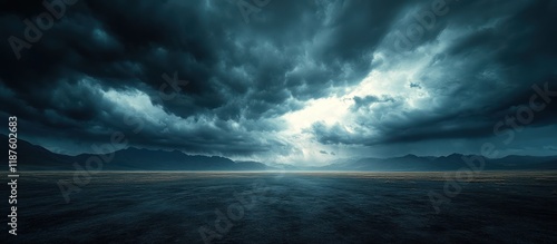 Obraz premium Stormy Plainscape Dark Clouds, Mountains