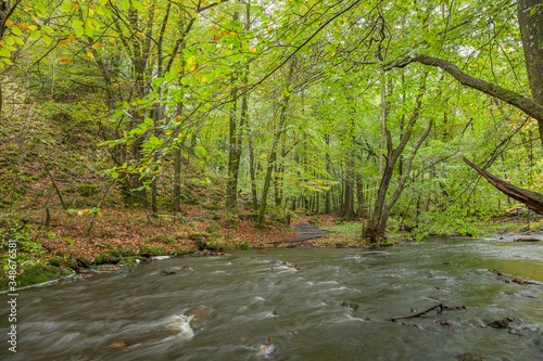 Obraz premium Stormy river flowing through the spring forest.selective focus, long exposure.