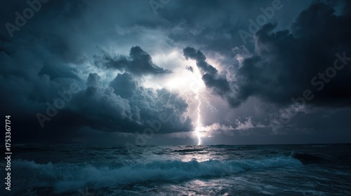 © anis rohayati, Naklejka premium Stormy seascape with lightning