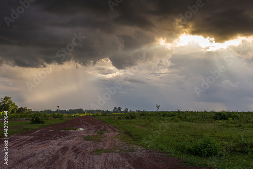 © thanit, Fototapeta premium Stormy skies over rural landscape nature photography dramatic weather open field wide angle atmospheric beauty