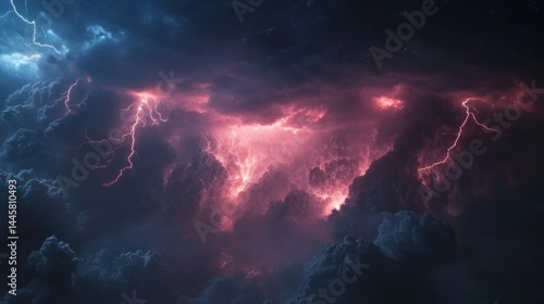 © Firmantio, Fototapeta premium Stormy sky with vibrant lightning