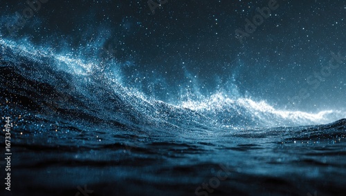 © Nisaa, Fototapeta premium Stormy, starry night sea waves