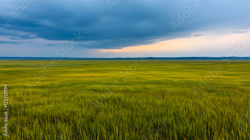 Obraz premium Stormy sunset over vast golden field